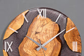 Horloge murale exclusive en résine époxy et bois d'olivier massif