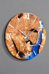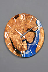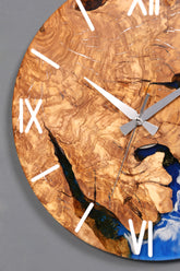Horloge murale exclusive en résine époxy et bois d'olivier massif