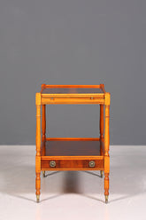Ce chariot de service élégant, de style anglais antique, allie fonctionnalité et design intemporel. Doté de plusieurs étagères, il offre un espace idéal pour les boissons, la vaisselle ou les objets décoratifs – parfait pour recevoir avec élégance ou comme table d'appoint. Son savoir-faire classique et son charme authentique en font une pièce maîtresse remarquable dans tout salon ou salle à manger. Un meuble polyvalent qui allie caractère et praticité.