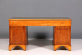 Magnifique bureau anglais, en bois d'if, plateau en cuir, bureau de style ancien